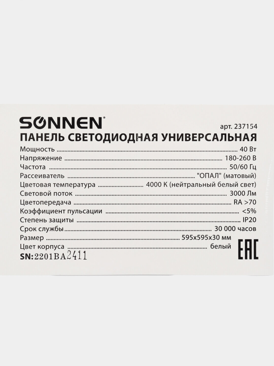 Светильник светодиодный с драйвером армстронг SONNEN стандарт 4000 K, нейтральный белый, 595х595х30 мм, 40 Вт, матовый, 237154 интересное: