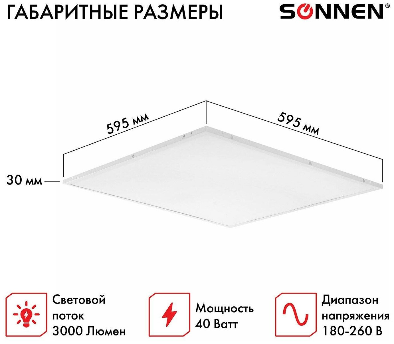 Купить Светильник светодиодный с драйвером армстронг SONNEN стандарт 4000 K, нейтральный белый, 595х595х30 мм, 40 Вт, матовый, 237154