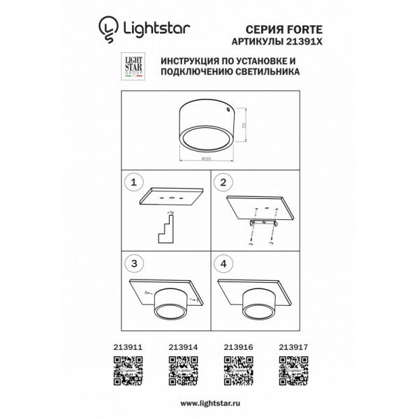 | Диаметр плафона | 10 см |