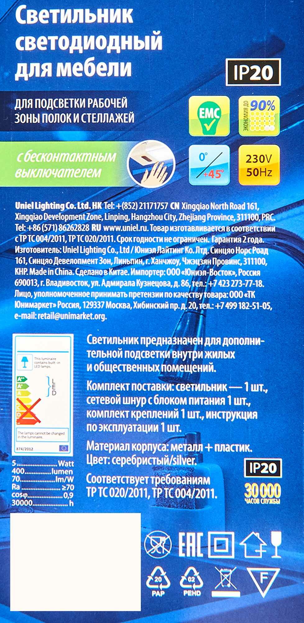 Ниже Вы можете прочитать отзывы на Мебельный светодиодный светильник Uniel ULI-F46-5W/2700-6000K/Dim Sensor IP20 Silver UL-00008282, ознакомится с подробными характеристиками, посмотреть интересные обзоры и фотографии на Мебельный светодиодный светильник Uniel ULI-F46-5W/2700-6000K/Dim Sensor IP20 Silver UL-00008282.