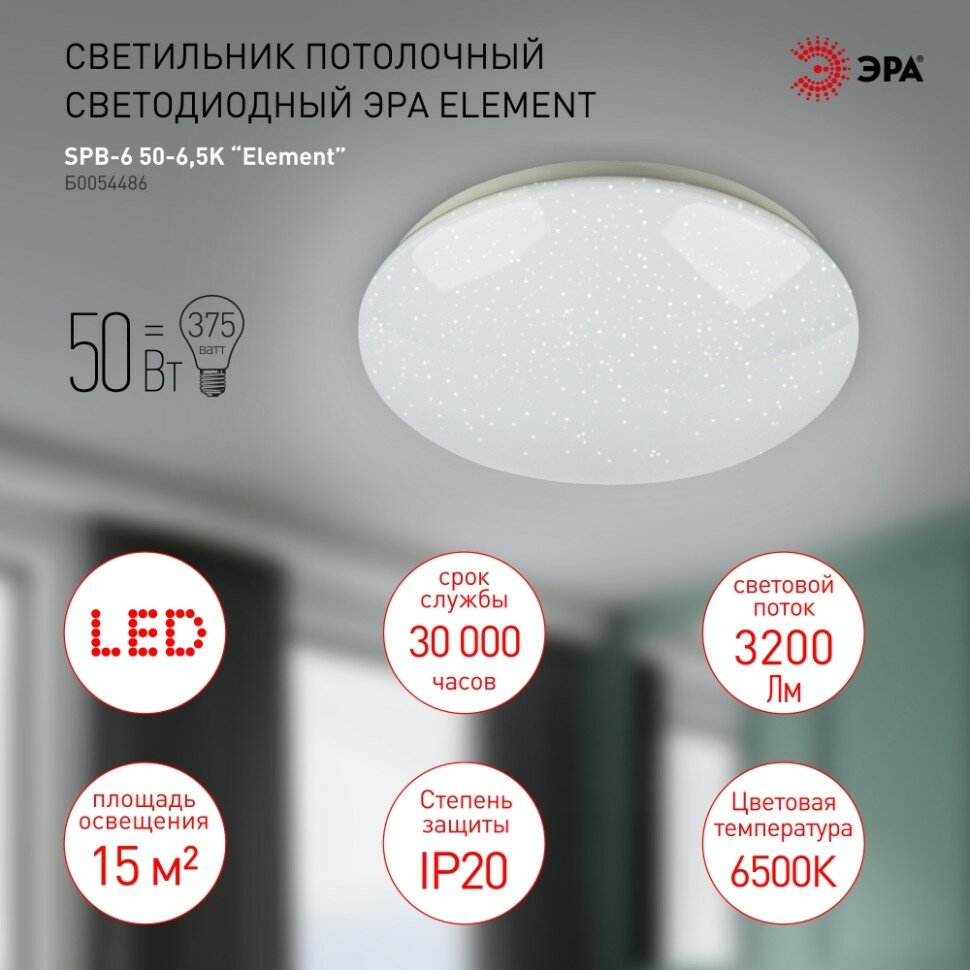 Потолочный светодиодный светильник ЭРА SPB-6-50-6,5K Element круглый Б0054486 интересное: