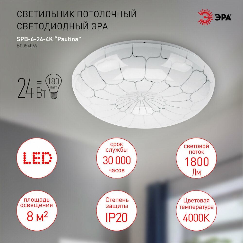 Светильник потолочный светодиодный ЭРА SPB-6-24-4K Pautina классика, белый, 24Вт, 4000К