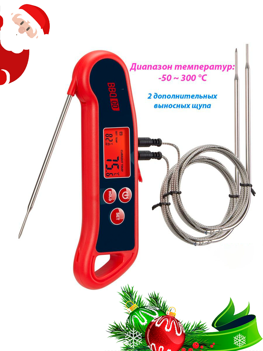 Кулинарный термометр электронный со щупом из нержавеющей стали, термометр для еды, мяса, вина, провод 1 метр / таймер кухонный
