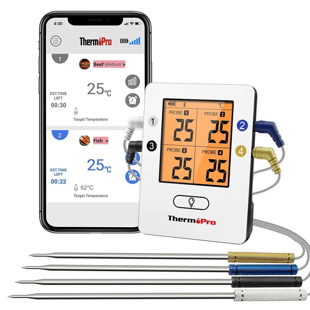 Беспроводной кухонный термометр (4 щупа) ThermoPro TP-25 интересное: