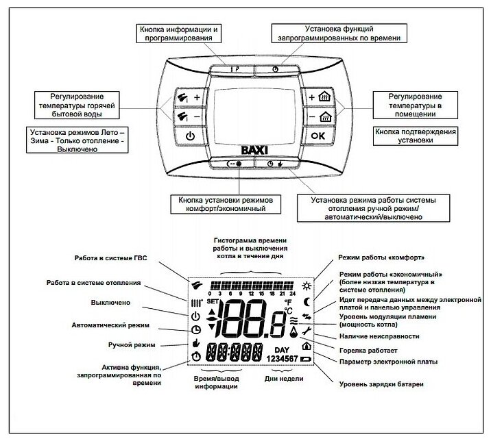 | Функции | автодиагностика, защита от замерзания, модуляция пламени, подключение теплого пола, защита от блокировки насоса, программатор, индикация включения, автоподжиг, защита от перегрева, термометр, манометр |