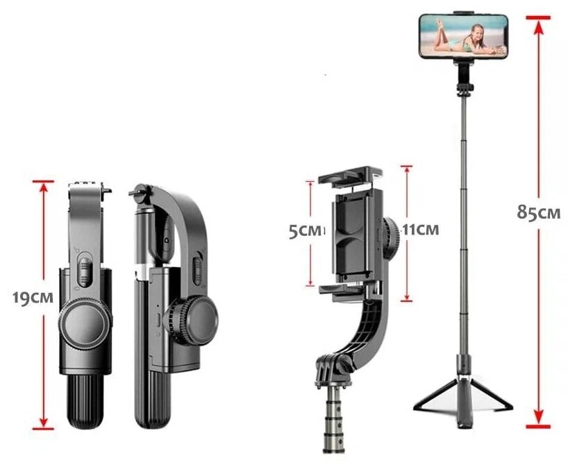 Стабилизатор-монопод Gimbal Stabilizer L08 для смартфона черный интересное: