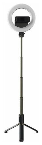 Монопод-трипод Selfie Stick MJ07 с кольцевой RGB лампой 16 см с регулируемым штативом 85 см и Bluetooth пультом, черный интересное:
