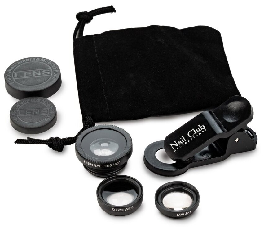 Макролинза для телефонов с черными металлическими объективами Nail Club LENS. интересное: