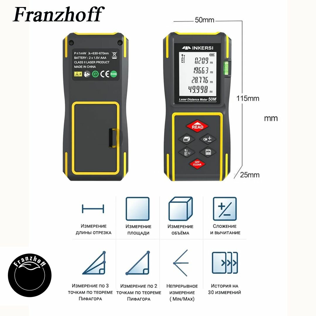 Дальномер лазерный рулетка INKERSI 70 м, (погрешность 2 мм), вычислитель площади, объёма интересное: