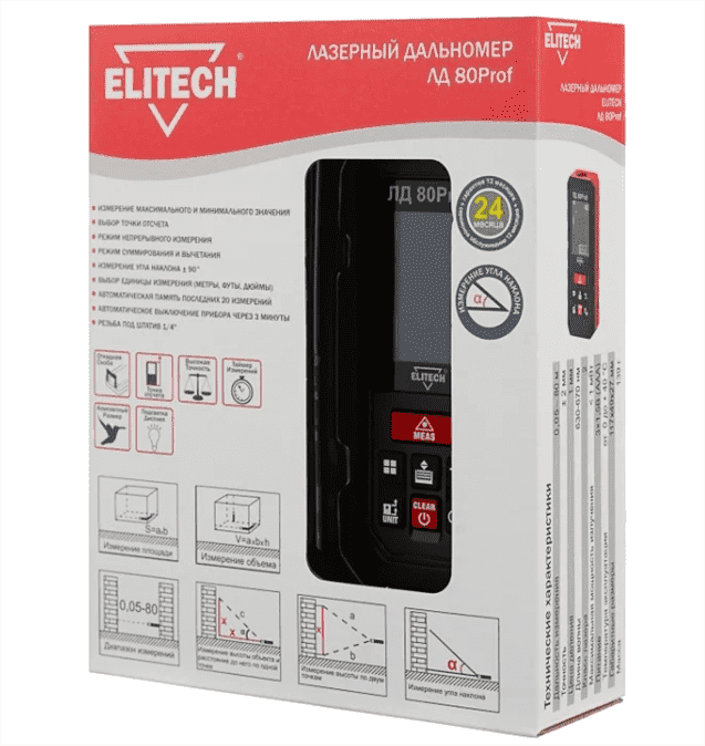 Лазерный дальномер ELITECH ЛД 80Prof интересное: