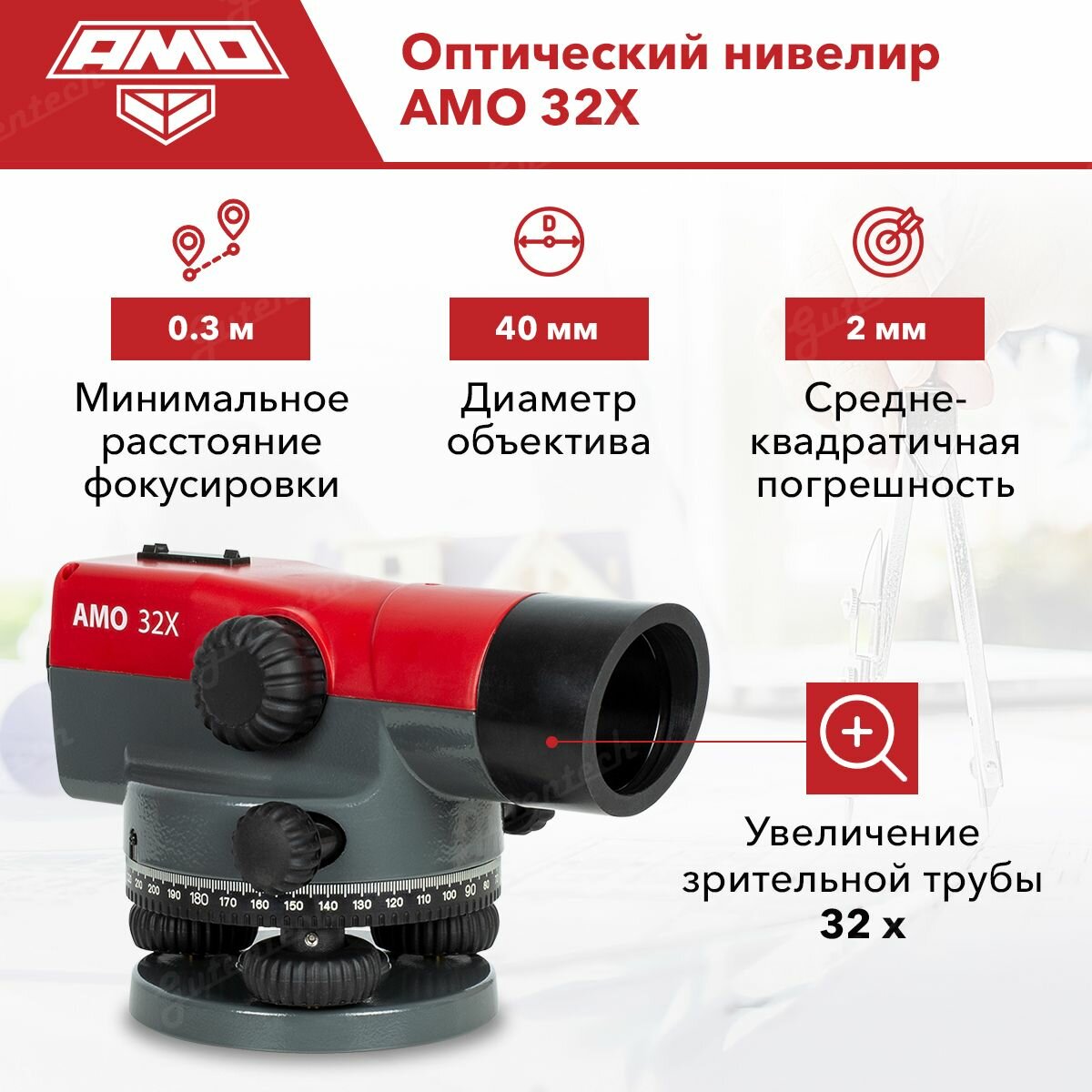 Оптический нивелир AMO 32X, 2 мм, 32 крат, магнитный компенсатор (арт. 877780)