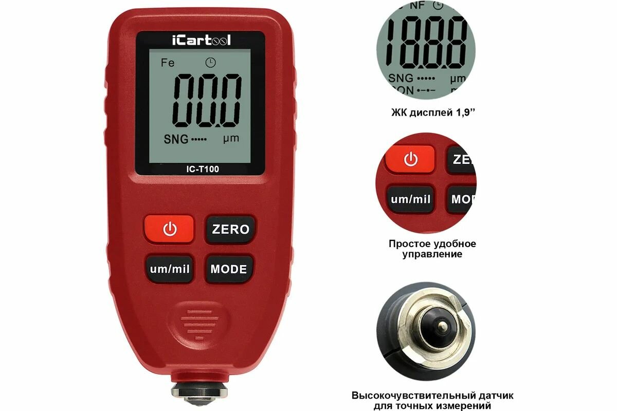 Купить Толщиномер лакокрасочных покрытий iCartool IC-T100