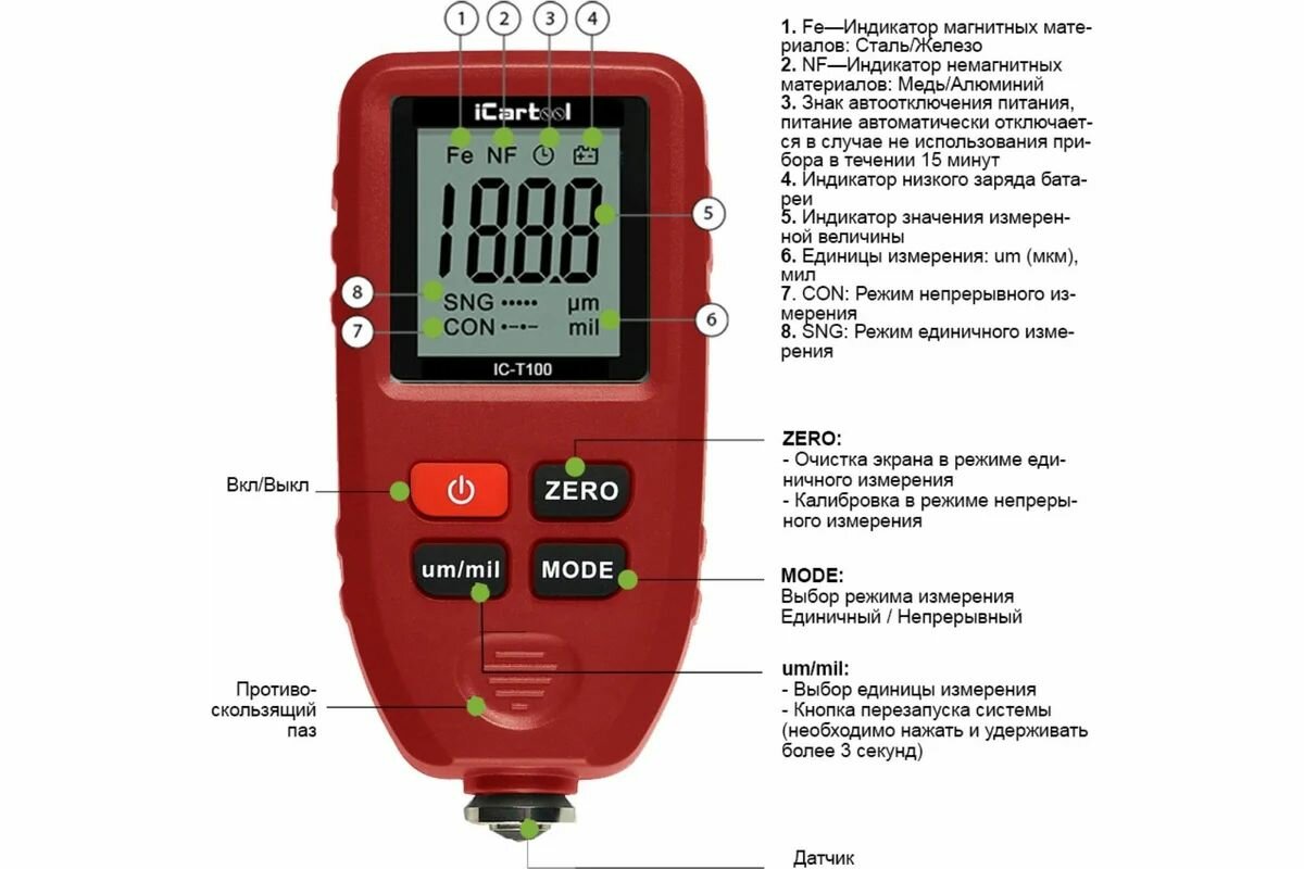 Толщиномер лакокрасочных покрытий iCartool IC-T100 интересное: