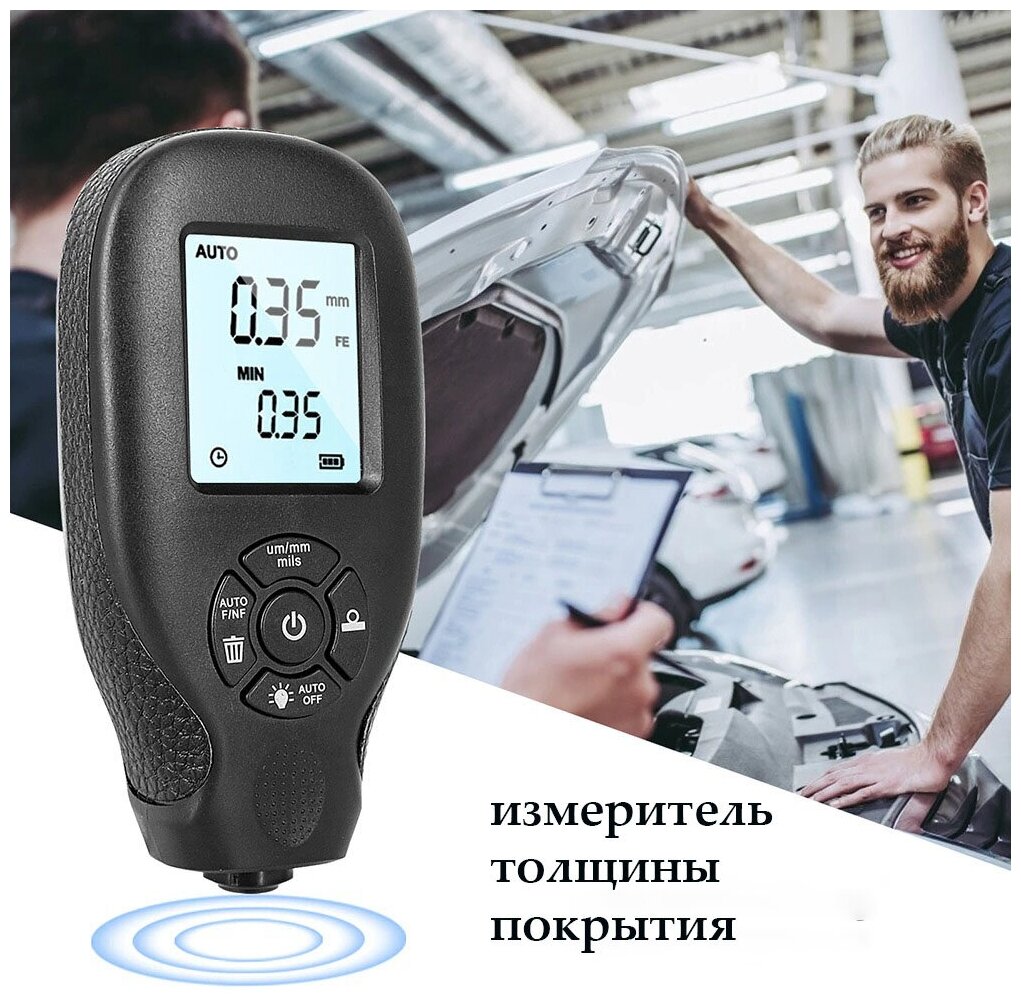 Толщиномер автомобильный лакокрасочных покрытий HW-300, черный интересное: