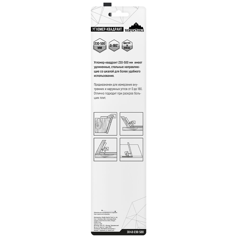 vertextools угломер-квадрант 230x500мм 3040-230-500