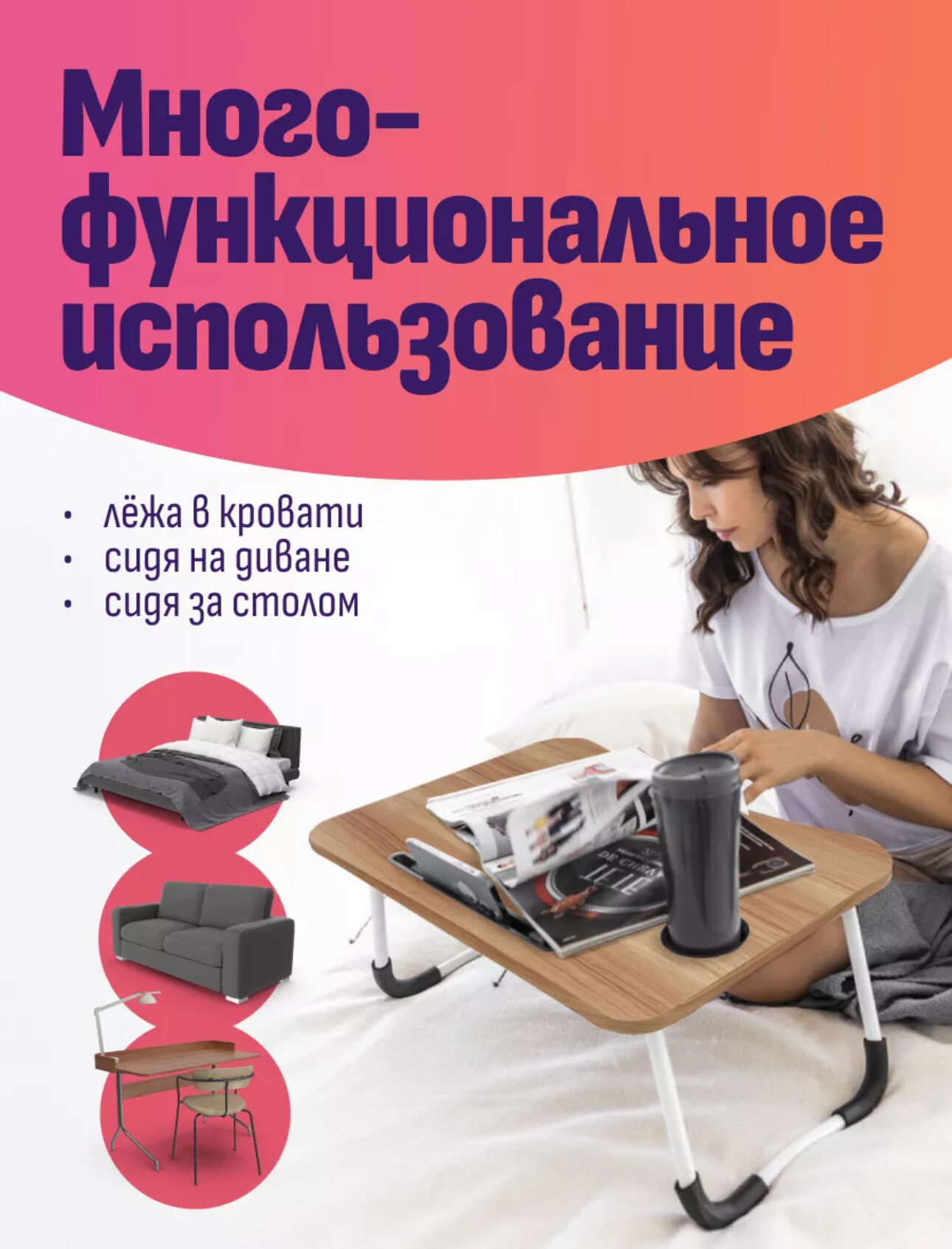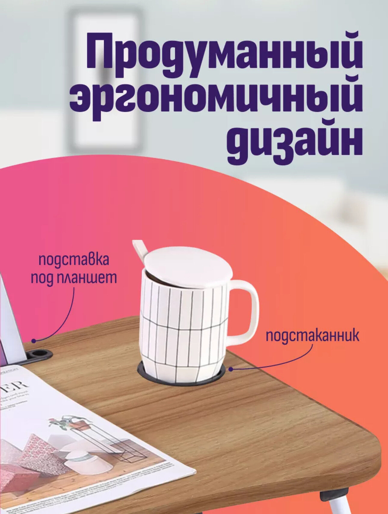 Столик-подставка для завтрака и ноутбука, бежевый интересное: