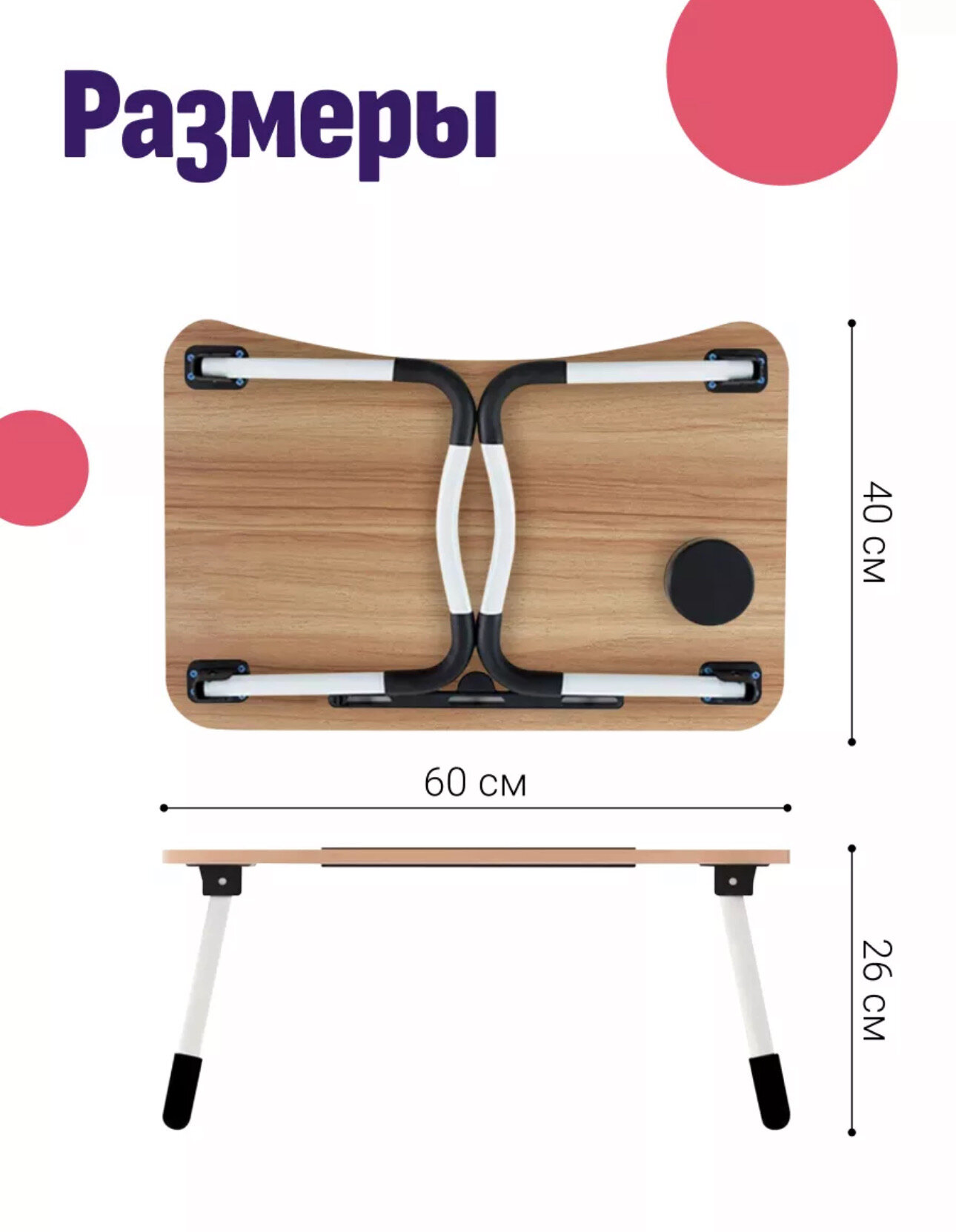 | Минусы: | Нп мой взгляд, ножки столика недостаточно устойчивы, должен быть болший угол наклон а. Тк все так этот столик покупали для использования на кровати, а не на жёсткой поверхности. Есть с чем сравнивать, пластмассовый дешёвый столик и оочень устойчивый решила поменять на более презентабельный-увы,не вышло. Совершенно непутный подстаканник, очень маленький. |