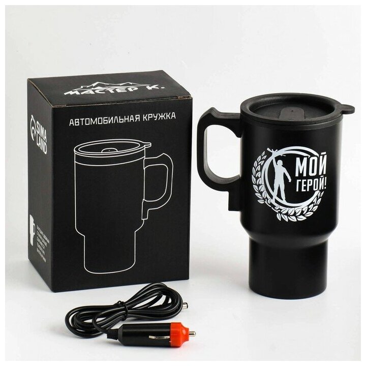 Термокружка "Мастер К. 100 % мужик", 450 мл, автомобильная, от прикуривателя, 12 х 17 см