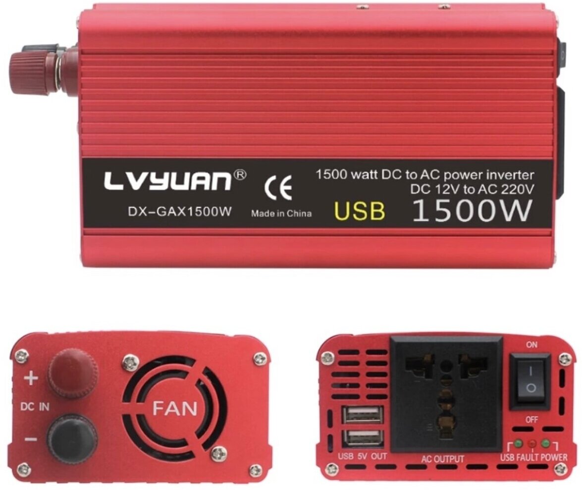 Купить Автомобильный преобразователь напряжения 1500 Вт 12В-220В инвертор Lvyuan автомобильный 1500w 12v-220v Power inverter красный
