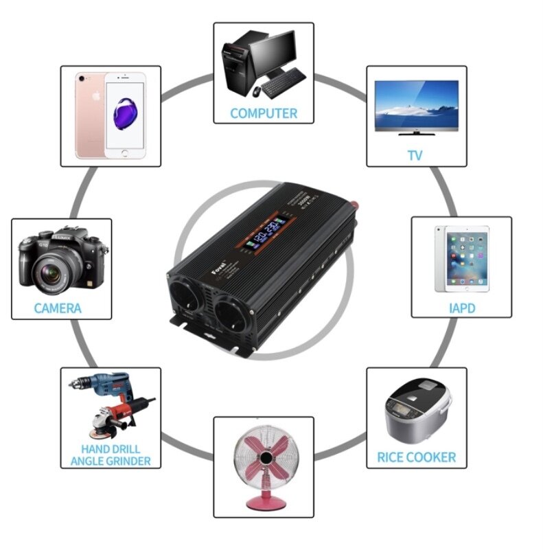 Автомобильный преобразователь напряжения инвертор FOVAL 1500 w 12v-220v Power inverter. Чистая, немодифицированная синусоида.