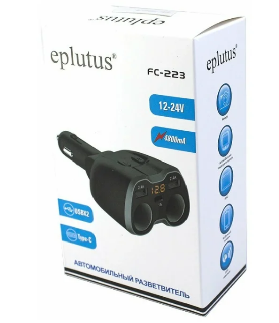 Купить Авто-разветвитель прикуривателя Eplutus FC-223, 2 12V, 2 USB, 1 Type-C