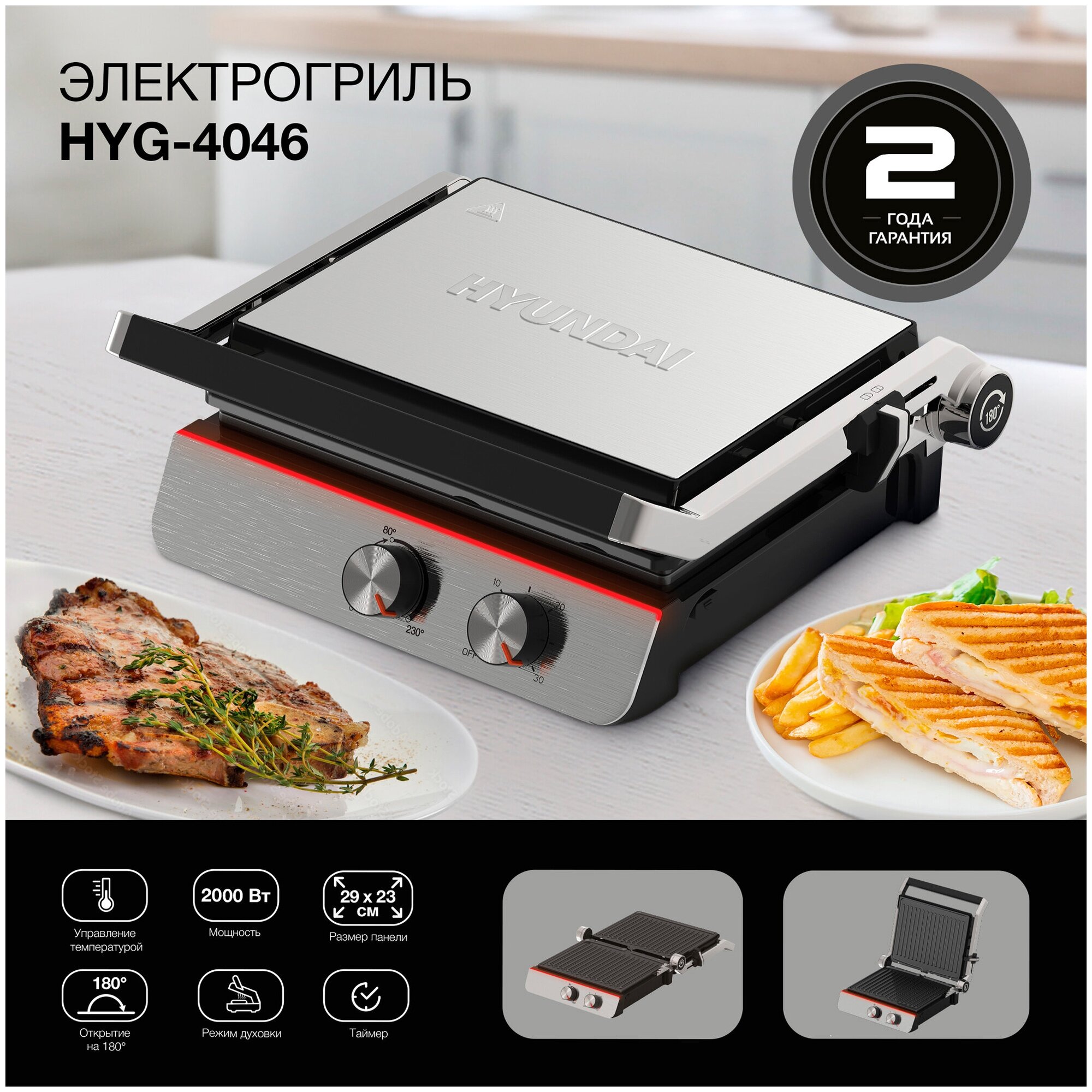 Электрогриль Hyundai HYG-4046, черный и серебристый