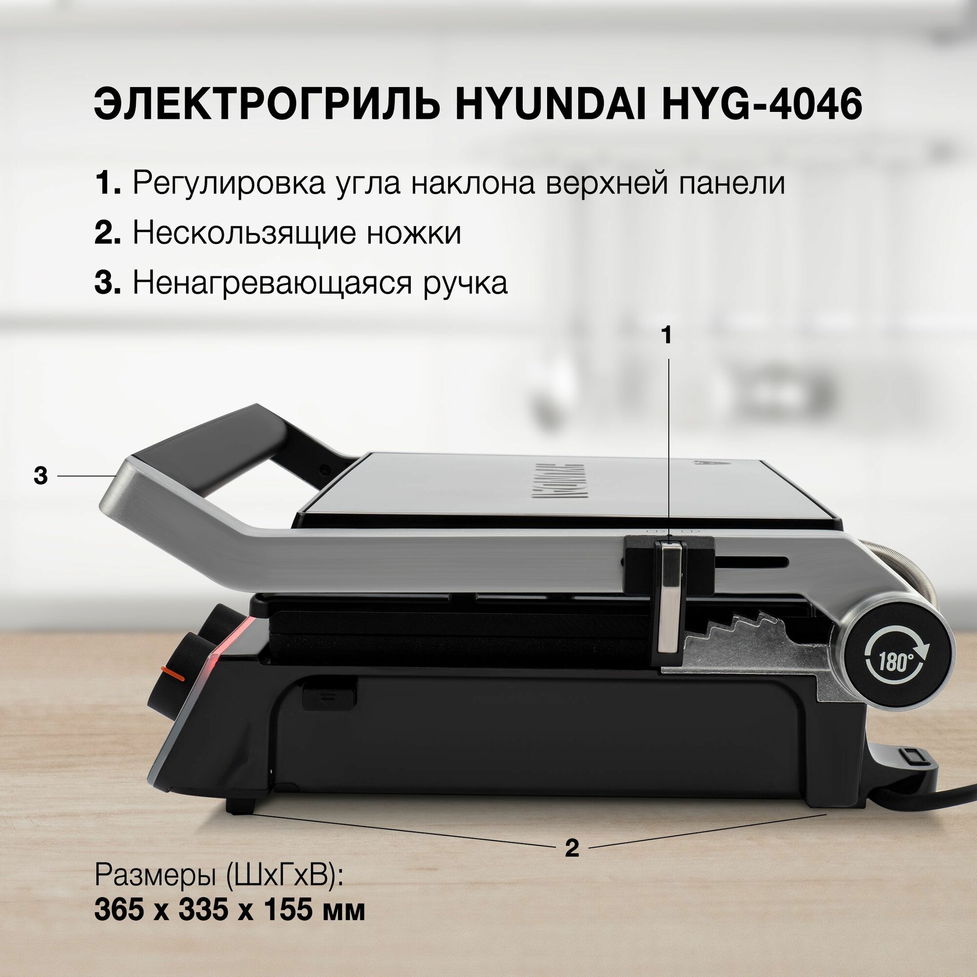 Купить Электрогриль Hyundai HYG-4046, черный и серебристый