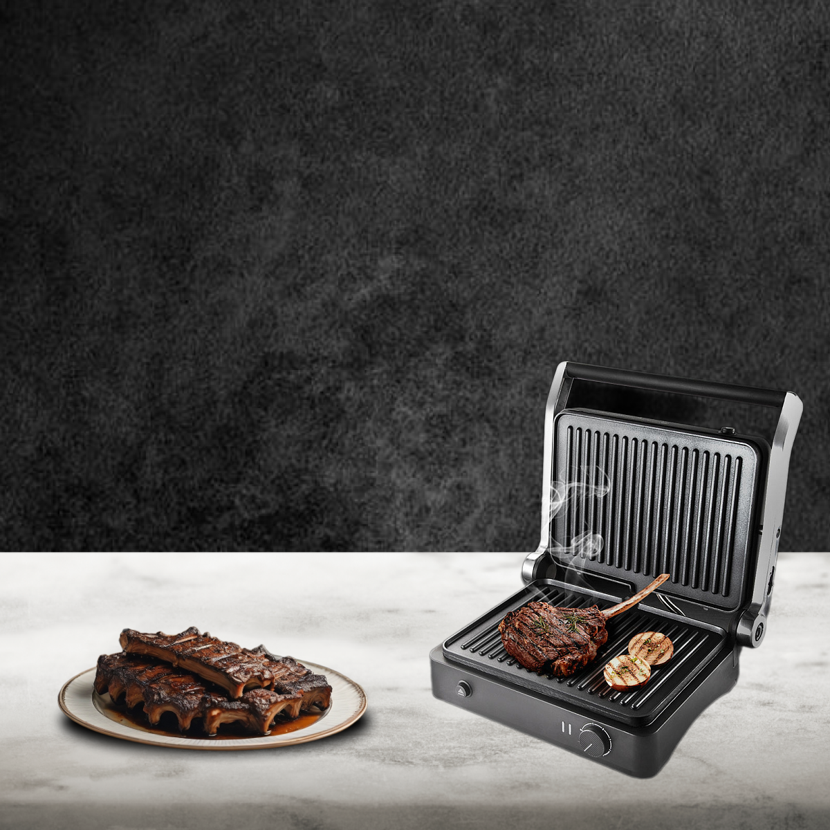 Электрогриль DOMFY Metal DSM-EG502, черный и серебристый