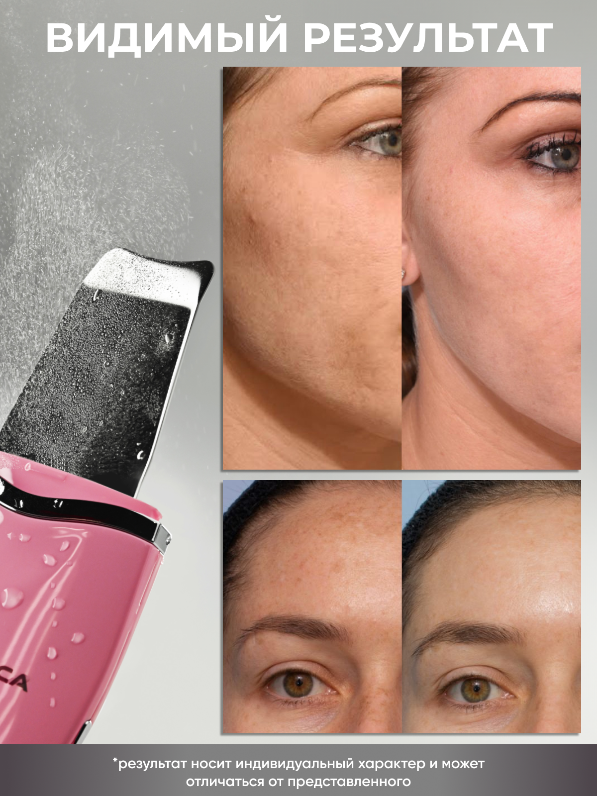 | Минусы: | Хотелось бы регулировать силу УЗ, где надо сильнее и легче. Сыворотка в капсулах трудно открывается и брызгает маслом |