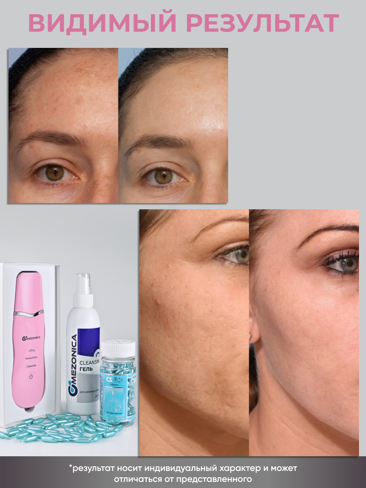 Mezonica Набор 3 в 1 Чистка лица и Омоложение (скрабер, розовый + УЗ гель холодного гидрирования + Серум капсулы витамин Е ) интересное: