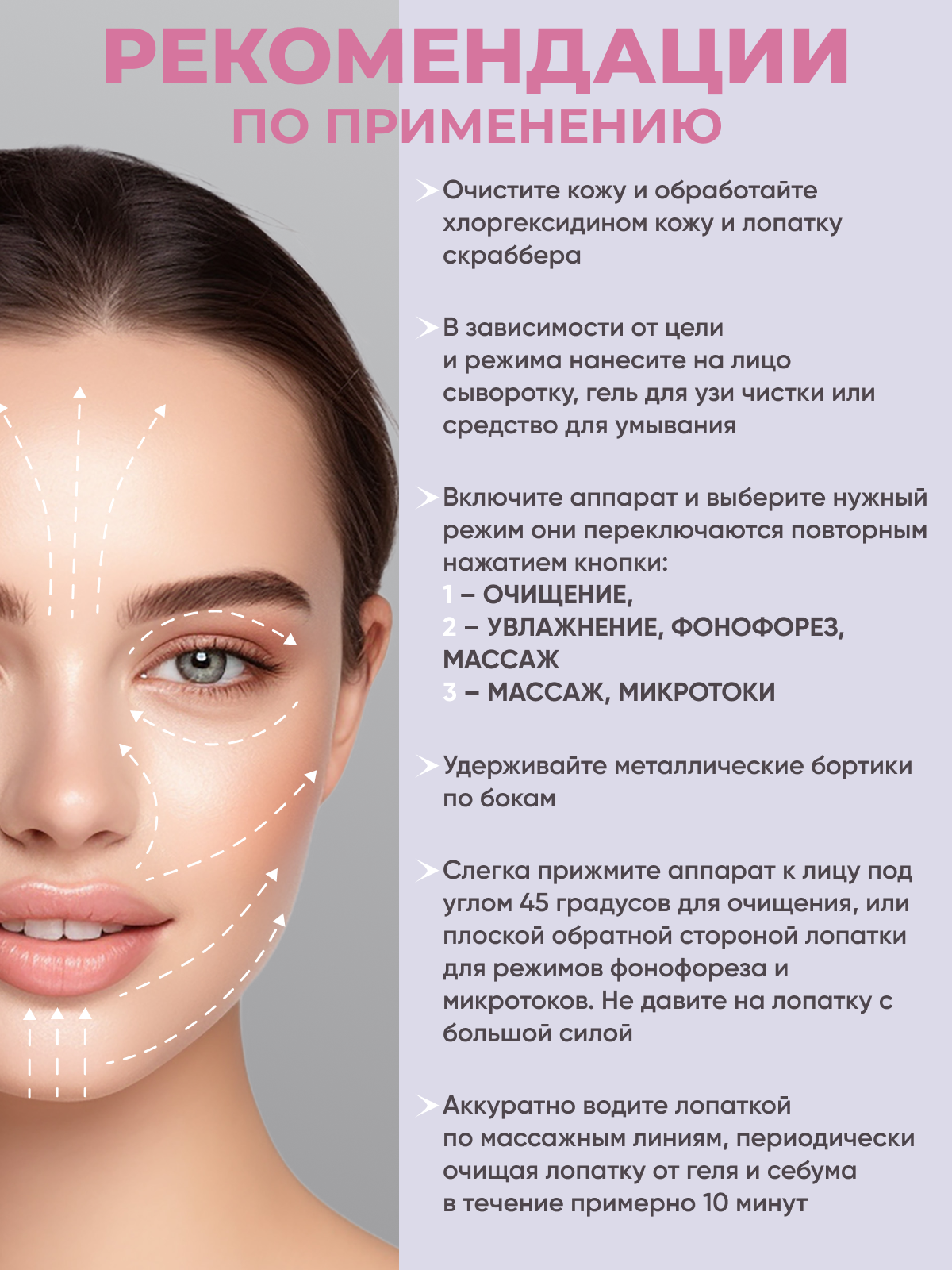 | Плюсы: | Очень стильный набор, все аккуратно упаковано, в пленочке. Сам аппарат в коробочке и мешочке, приятный на ощупь, сенсорные кнопки, 3 режима. Заряд держится долго. Гель удобный, расходуется мало, хотя впитывается в кожу быстро |