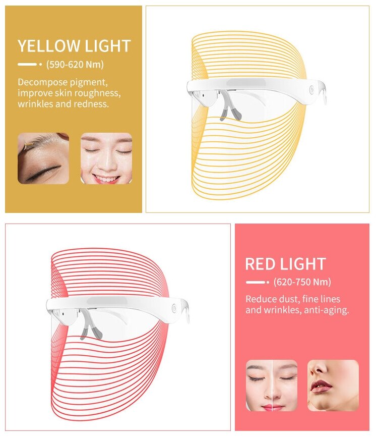 Маска косметическая светодиодная LED семицветная для омоложения кожи лица против морщин лифтинг эффект интересное: