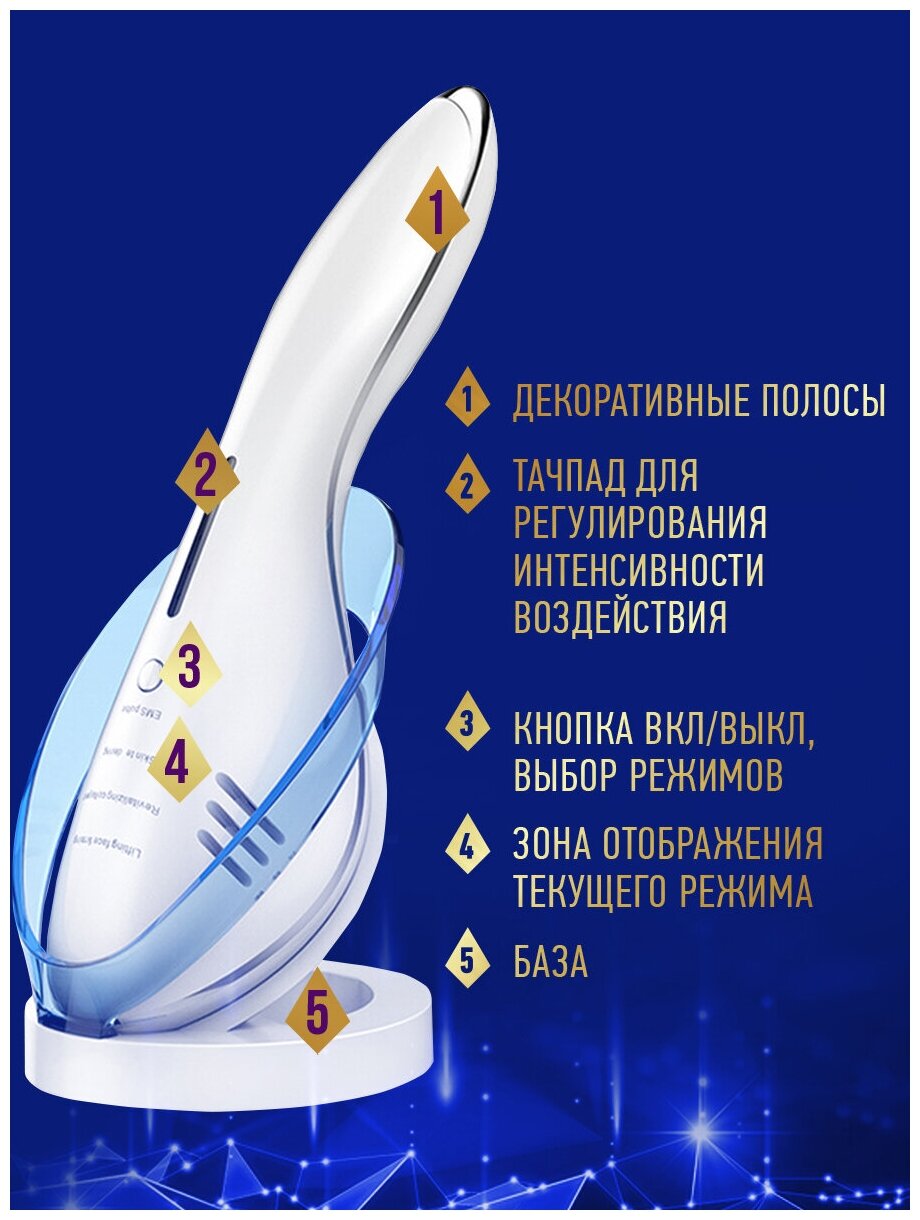 | Принцип работы | микротоки / миостимуляция / электропорация / RF-лифтинг / вибрация / светотерапия |