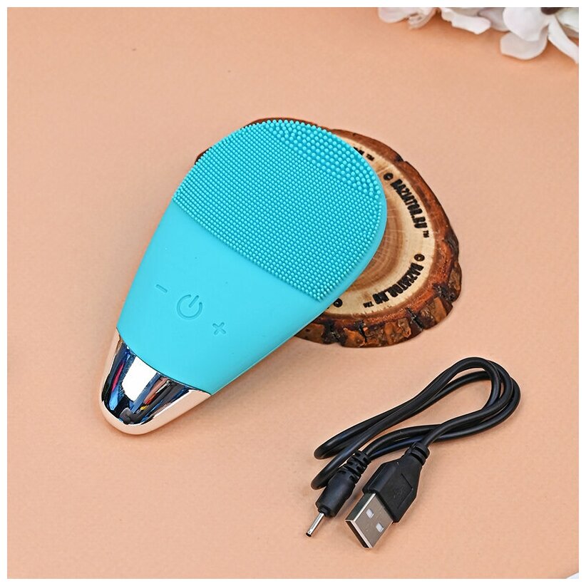 Электрическая ультразвуковая силиконовая щетка-массажер для очищения лица Super Cool Brush, бирюзовая интересное:
