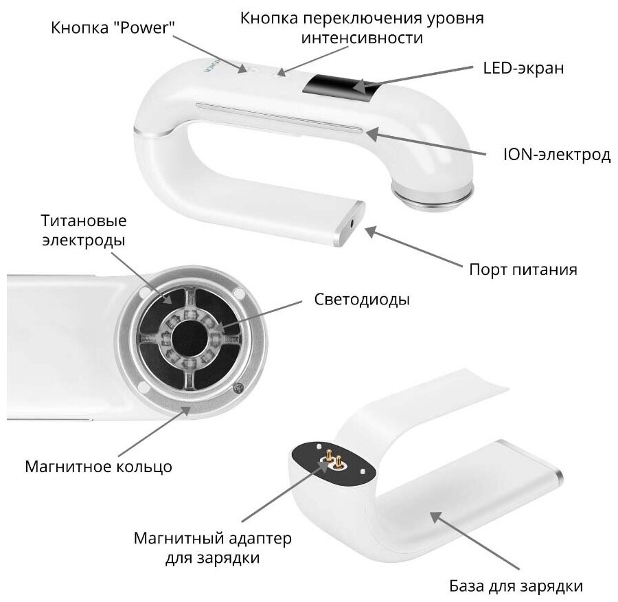 | Принцип работы | гальванотерапия / микротоки / миостимуляция / электропорация / RF-лифтинг / ионизация / вибрация / фонофорез / светотерапия |
