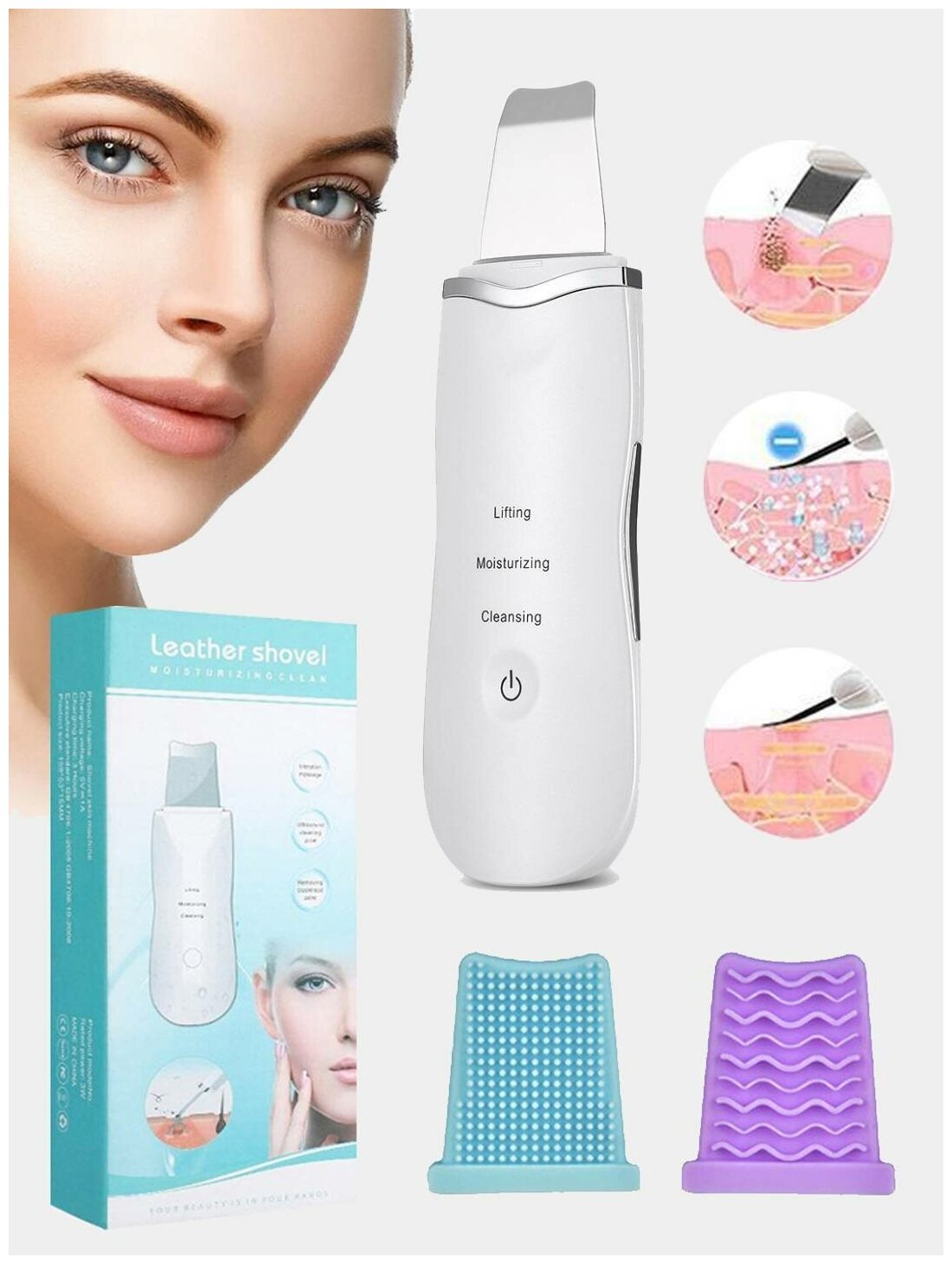 Ультразвуковой аппарат для чистки лица Массажер для лица Ультразвуковой скраббер для лица Ультразвуковая чистка лица Leather shovel интересное: