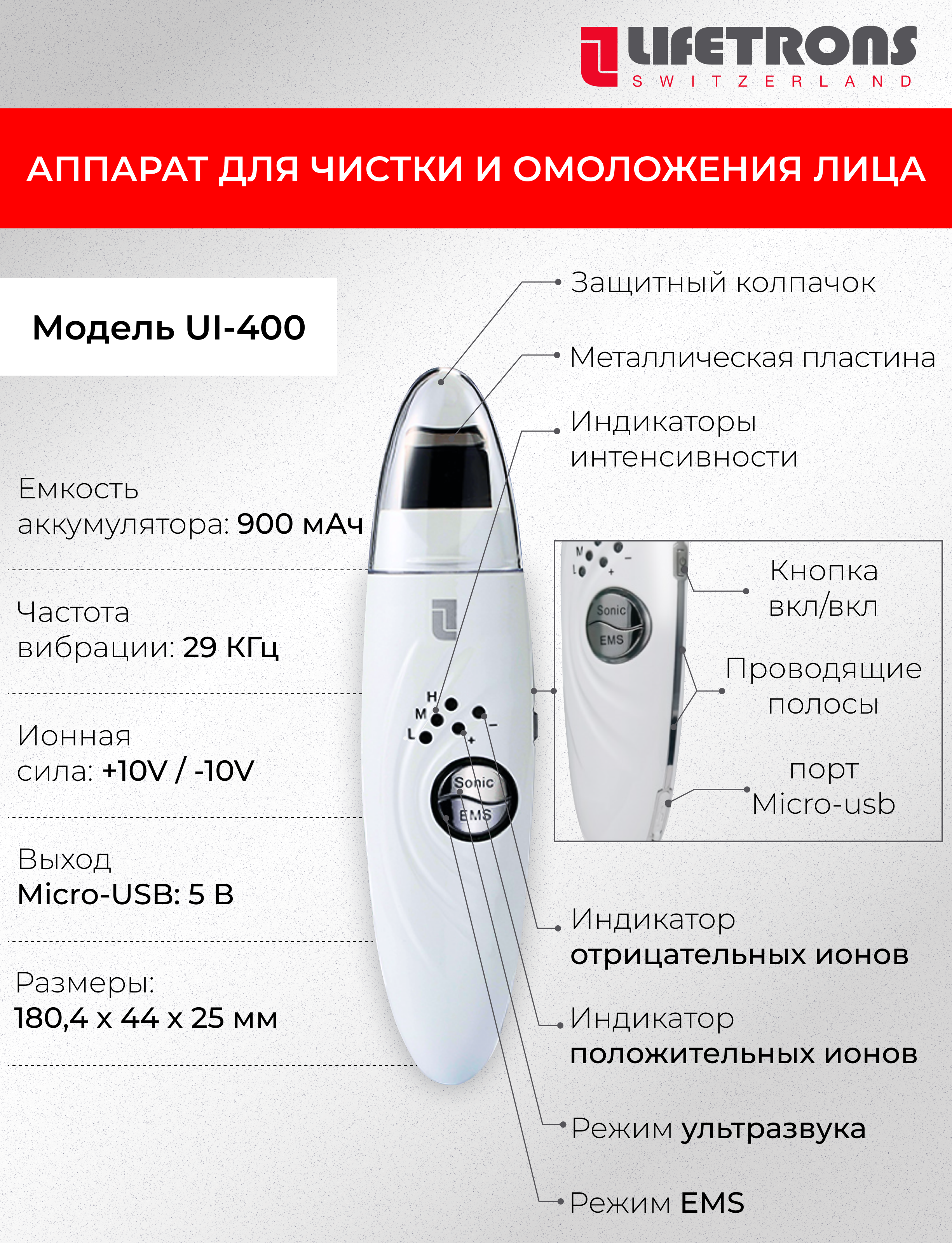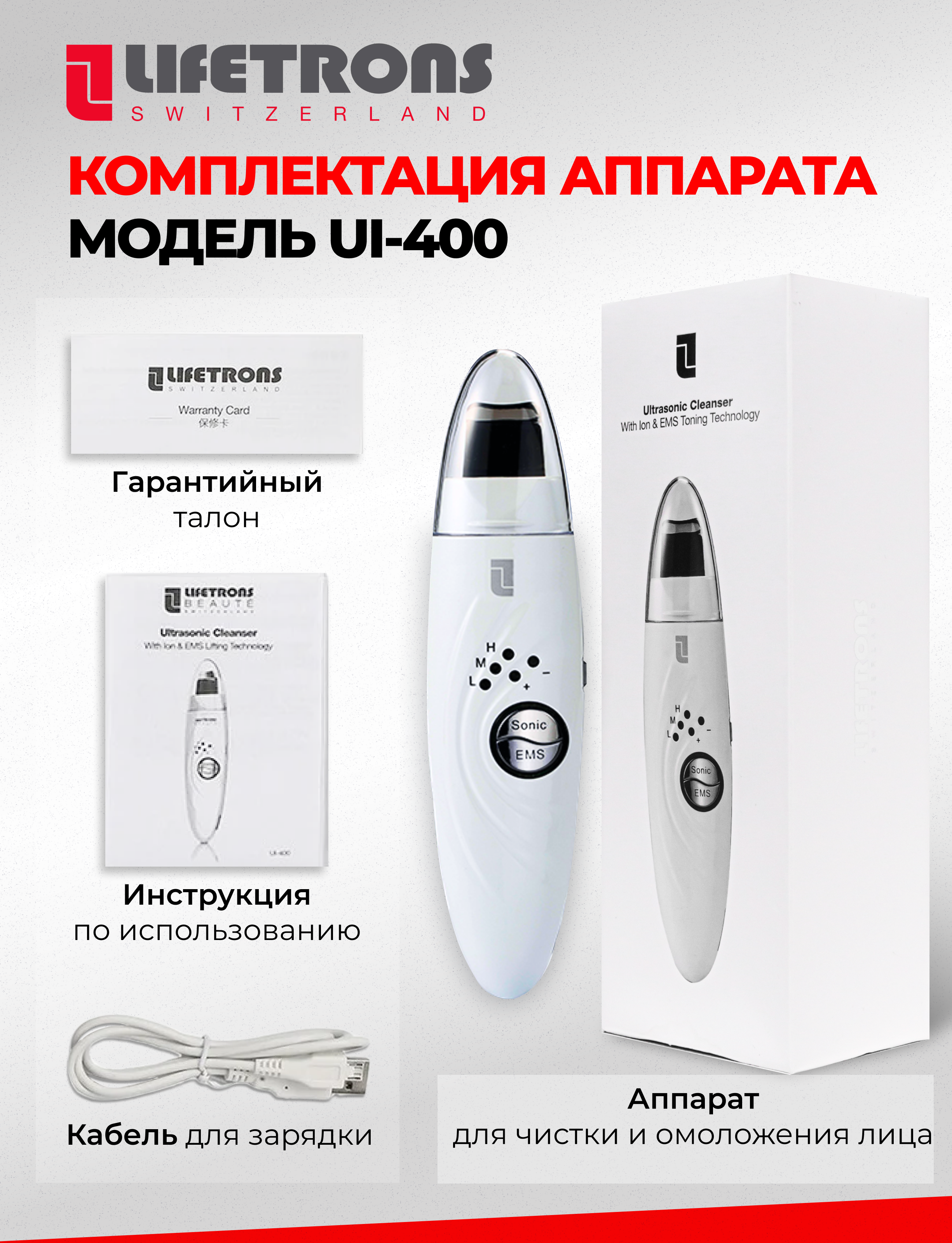 Lifetrons Косметологический ультразвуковой очищающий прибор с технологией ионного лифтинга и ЭМС интересное: