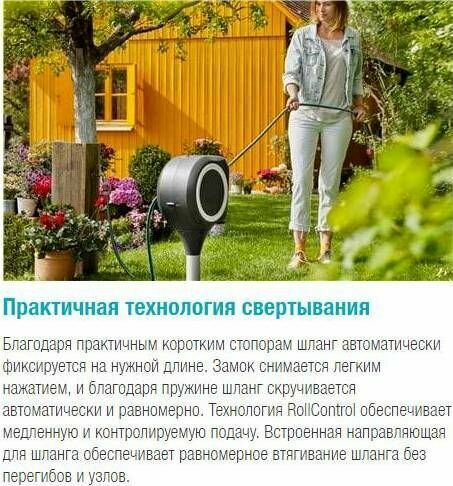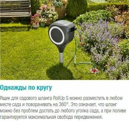 Катушка со шлангом свободного размещения автоматическая GARDENA RollUp M (белый цвет) интересное: