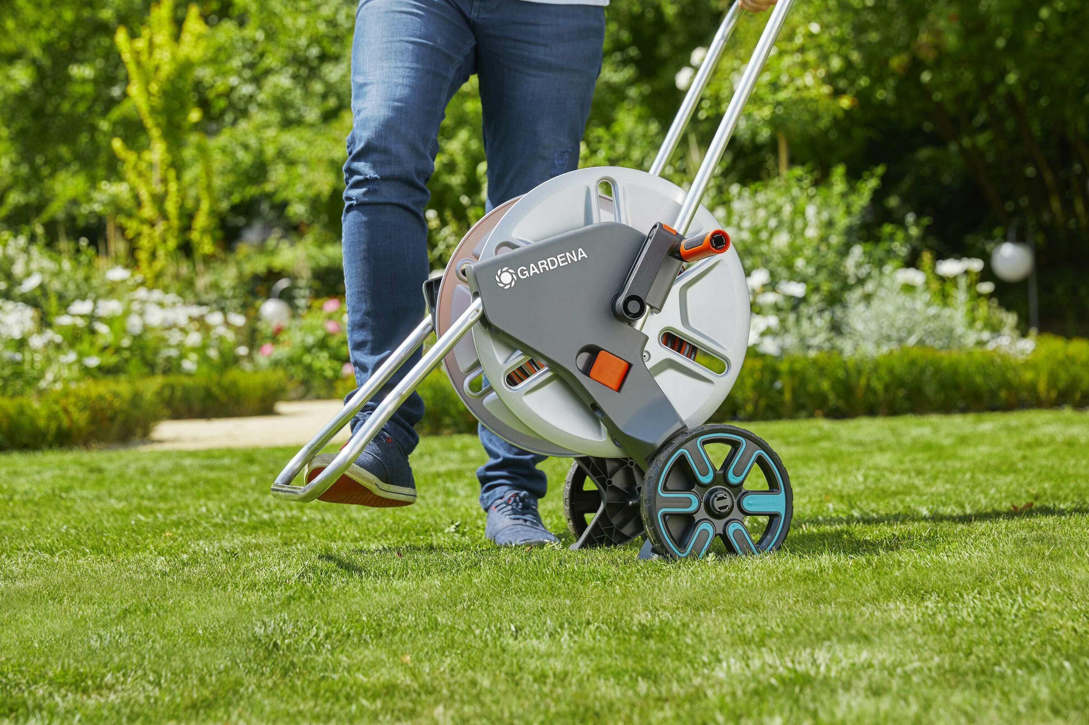 Тележка для шланга металлическая CleverRoll M с комплектом для полива интересное: