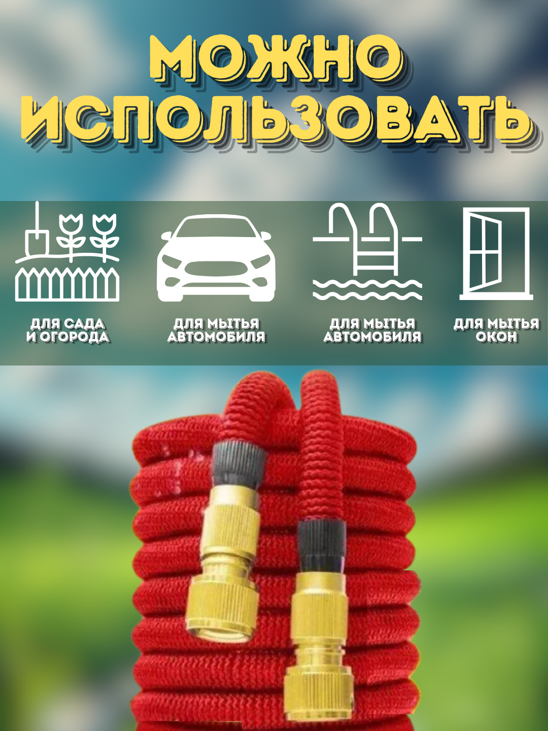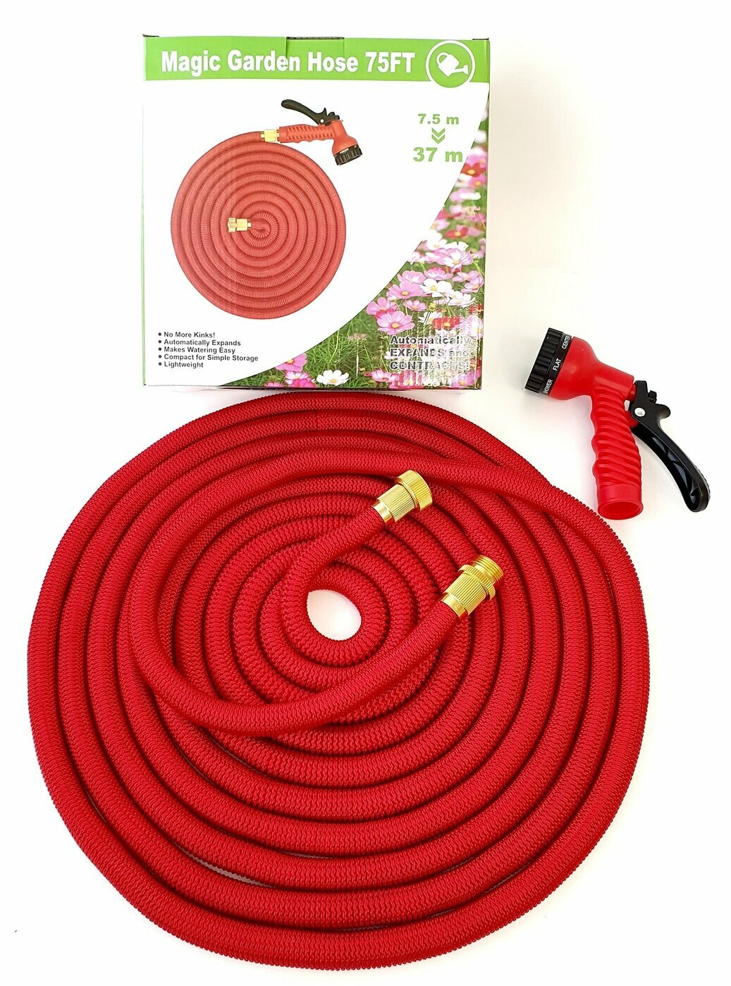 Шланг поливочный удлиняющийся с распылителем 7,5-37 метр, красный