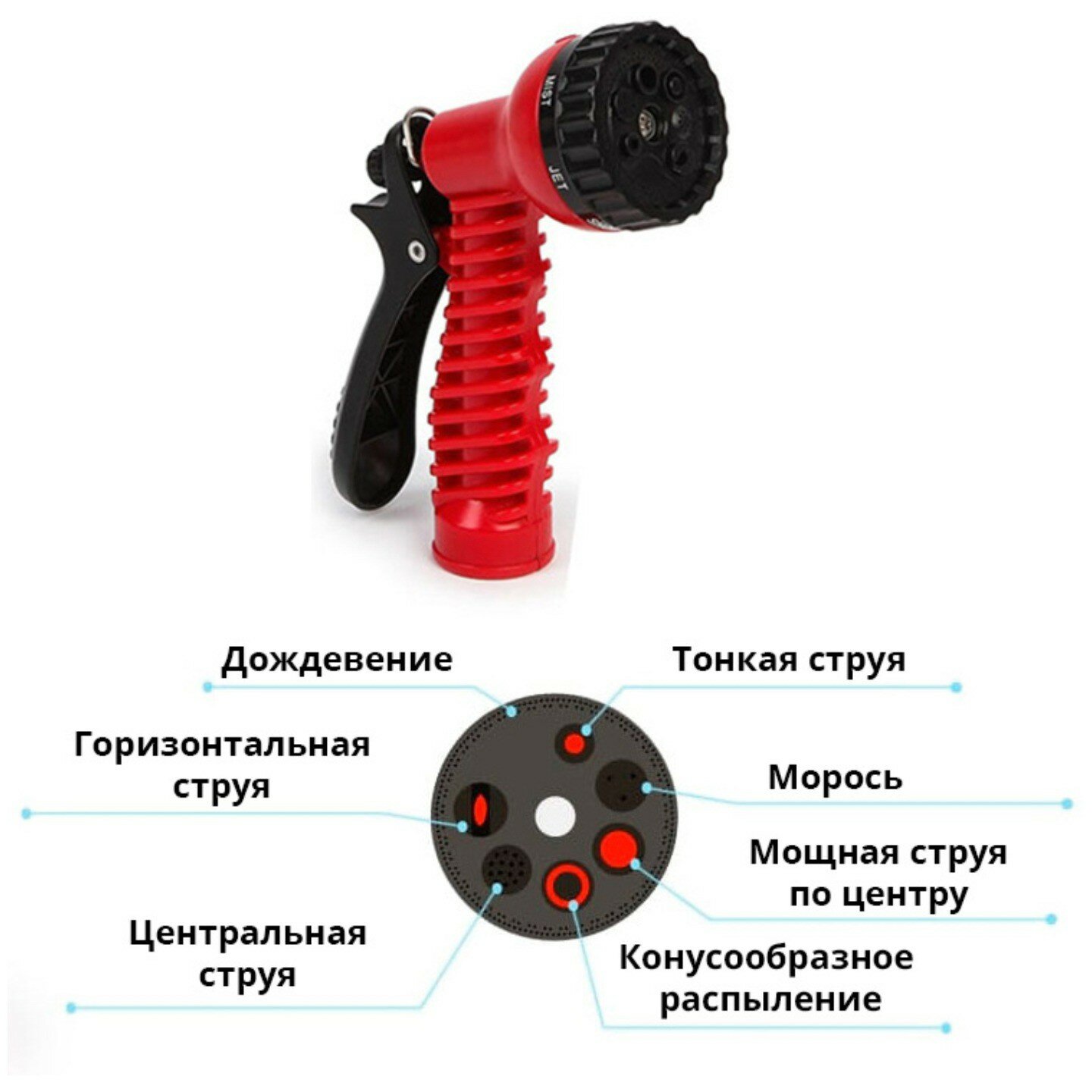 Шланг садовый для полива растягивающийся увеличивающийся лейка-распылитель и насадка быстросъем, пистолет 30 метра