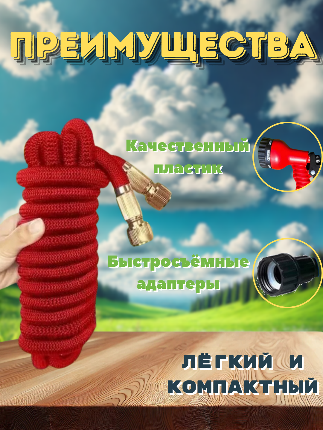 Легковесный шланг увеличивающийся (5 м - 15 м) с функцией модульного присоединения к смесителю для эффективного полива сада даже в труднодоступных участках, с распылителем, 7 режимов
