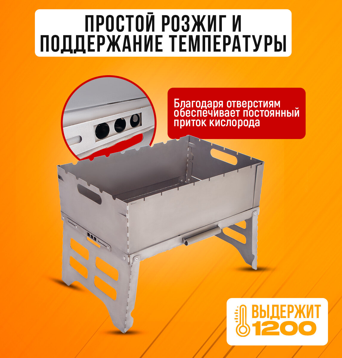 Купить Складной мангал Helicon из углеродистой стали (чемодан), сборка - разборка за 7 секунд