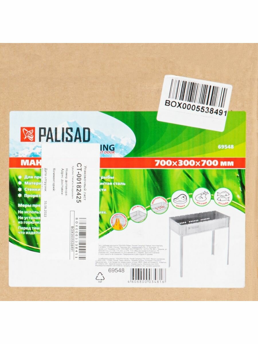 PALISAD 69548 Мангал разборный 700х300х700х0.8мм PALISAD