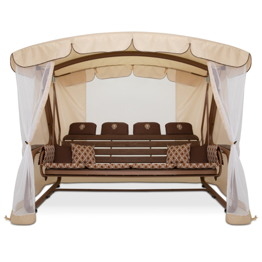 Качели садовые 4-х местные Ольса Шатер ткань панама каркас коричневый, ткань полоска бежево-коричневная