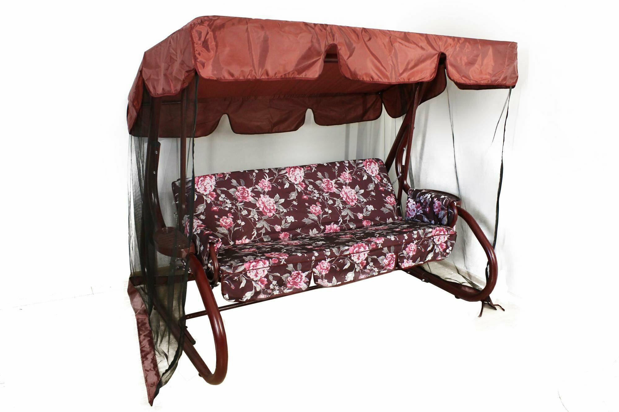 Качели садовые 3-х местные Мебельторг Катрин Каркас бордовый/Бордовый рис.цветы интересное: