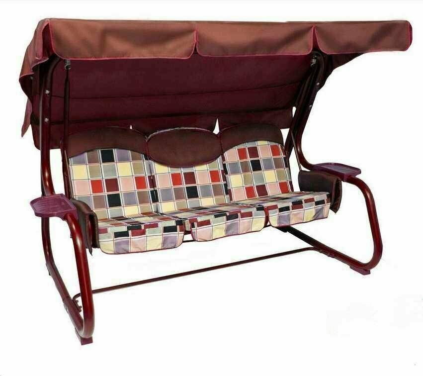 Качели садовые 3-х местные Мебельторг Мастак Каркас бордовый/Разноцветный рис.полоска интересное: