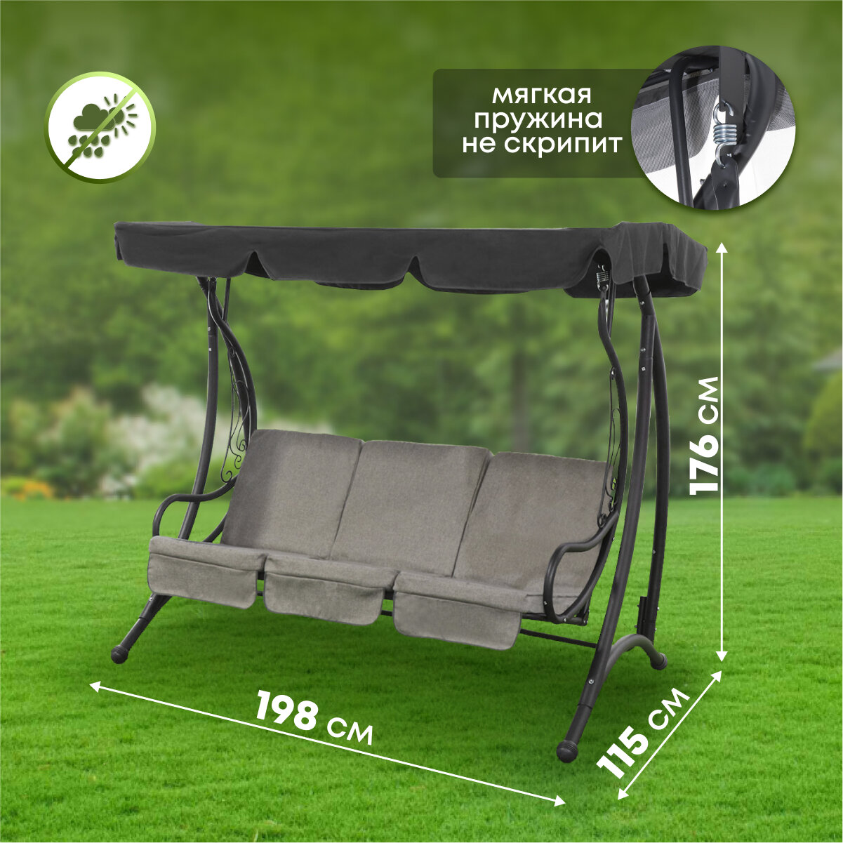 Купить Спорт Качели садовые 3-х мест 198*115*176см до 250кг, рогожка серый GREEN DAYS