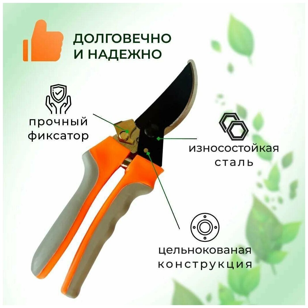 Секатор цельнокованый для веток, кустов, ножницы садовые, 23 см, серый-оранжевый интересное: