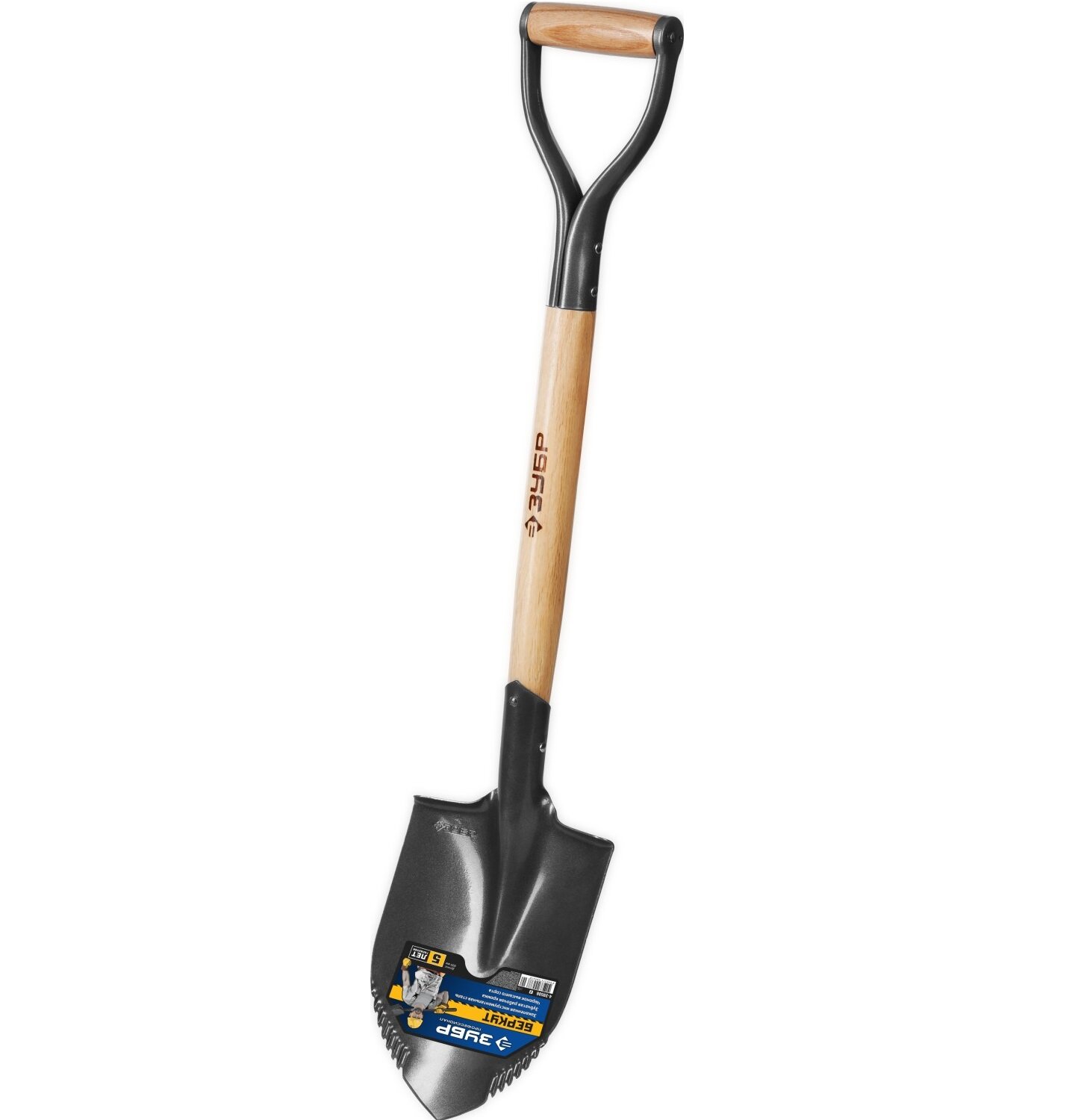 ЗУБР Беркут, 228х173х800мм, полотно 1.6мм с зубцами, закалено, дерев.черенок высш. сорт с рукояткой, автомобильная лопата, профессионал(4-39506)